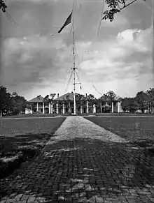 On July 7, 1866, the barracks was renamed "Jackson Barracks" after the general who won the Battle of New Orleans, "Old Hickory," Andrew Jackson.[8] Three years later, the United States reorganized its "colored troops" into colored regiments. An ACT of Congress signed March 3, 1869, reduced the four colored regiments to two. The 39th and 40th Regiments were consolidated and renumbered as the 25th Infantry Regiment headquartered at Jackson Barracks, under the command of Colonel Joseph A. Mower until May 1870.[9] Known as the Buffalo Soldiers, they served the United States during the Indian wars and Spanish–American War.