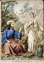 Jacob's Well is mentioned by name once in the New Testament in a passage (John 4:5–6) which says that Jesus "came to a city of Samaria called Sychar, near the field which Jacob gave to his son Joseph. Jacob's well was there."[1] John's Gospel goes on to describe a conversation between Jesus and a Samaritan woman (called Photini in Orthodox tradition), which took place while Jesus was resting at the well after a tiring journey.[4] (John 4:7–15) The site is counted as a Christian holy site. From a Christian perspective, the reference in John's Gospel to the well seems to hint at a deeper nuptial reading of Jesus as the Bridegroom of Israel come to reunite the divided tribes through a spiritual union with him, the long-awaited Messiah; see St. Augustine's Tractate 15 on the Gospel of John.