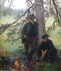 His art often reflected an unsentimental image of the Norwegian peasant environment in Numedal, Valdres, Hadeland and Lillehammer. He is represented at the National Gallery of Norway with several paintings, including På rugdepost from 1887 and Vinterdag from 1900.[2]