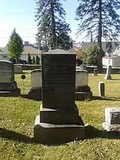 Jacob N. Liggett married Evelyn Virginia Winfield (1830-1867), the daughter of Dr. Richard Winfield, in Rockingham County, Virginia. She died on May 22, 1867, aged 38, leaving him with four small children (of whom only Virginia P. Liggett Schuler (1855-1931) survived to adulthood).[4] In 1884, the widower married Isabelle Spence (1842-1915), a doctor's daughter from Westmoreland County, who survived him. He was a Freemason and member of the Sons of Temperance.