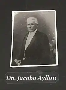 Jacobo Aillón, or Ayllon as it is sometimes spelled, (?-1893) was a Bolivian industrialist, landowner and politician. He had residencies in Sucre and Potosí, as well as several haciendas in the Chichas province. His wife Juana Aramayo was a cousin of the "tin baron" José Avelino Aramayo.