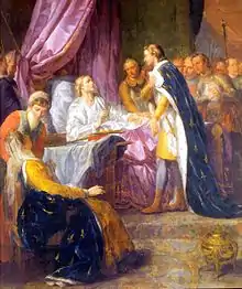 Saint Louis, King of France, on his deathbed, giving his last advice to his son Philippe, by Jacques-Antoine Beaufort