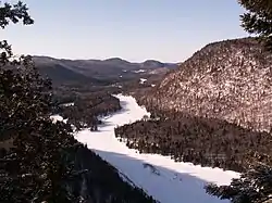 - 2.1 kilometres (1.3 mi) southwesterly, to Jacques-Cartier Lake, which is the main body of water in the Jacques-Cartier river;