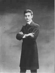In 1903, d'Adelswärd and his friend, Albert François (Hamelin) de Warren (1881-1928), brother of Rene de Warren, were rumoured to be holding "entertainments" – tableaux vivants of pupils from the best Parisian schools – in his house at 18 Avenue de Friedland.[2] One of the first alleged "victims" was Eduardo (Bruno) de Warren (1886-1957), brother of Hamelin.[3] D'Adelswärd and Hamelin were arrested on charges of inciting minors to commit debauchery. d'Adelswärd was arrested on 9 July by Octave Hamard, chief of the Paris police and his deputy Blot by order of Charles de Valles, pretrial judge. The order stated the suspicion of indecent behaviour with minors and offending the public decency. He was brought to La Santé Prison after arrest. The newspapers and magazines published alleged details of d'Adelswärd's and Hamelin's orgies, which they called Messes noires (Black Masses) in their homes twice a week, with youngsters from the upper classes, mostly recruited from the Lycée Carnot, and Chaptal, Condorcet, Janson-deSailly and Saint-Joseph-des-Tuileries schools.