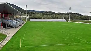 The stadium grandstand offers more than 600 covered seats and 1,800 standing places. In addition to the stadium with the main pitch, the facility also includes three training fields, including an artificial turf and a goalkeeper training field.