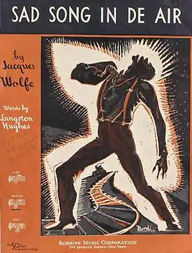 Wolfe was born into a Jewish family[1] in Botoşani, Romania. His family emigrated to New York when he was a very young child. He displayed musical talent as a youngster and, at 16, he entered the Institute of Musical Art, now known as Juilliard School. During World War I, he was stationed at Governor’s Island, where he played clarinet in a military band. Transferred south, Wolfe made his first direct contact with African-American music. He was fascinated with the genre and did extensive research on the history of black folk songs and spirituals. He became inspired to write his own music based on the style. His spirituals and “work songs” became very popular in sheet music form in the early 1930s. In 1934 Wolfe collaborated with poet Langston Hughes to write "Sad Song in de Air," published by Robbins Music Corp.