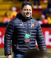 He made his senior debut for Costa Rica in a January 1994 friendly match against Norway[10] and earned a total of 63 caps, scoring 10 goals.[11] He represented his country in 21 FIFA World Cup qualification matches[9] but injuries and bad luck came his way and denied him of playing in the 2002 FIFA World Cup.[12] He played at the 1999,[13] 2001 UNCAF Nations Cups[14] and 2005 UNCAF Nations Cups[15] as well as at the 2000[16] and 2005 CONCACAF Gold Cups[17] and the 1997 Copa América.[18]