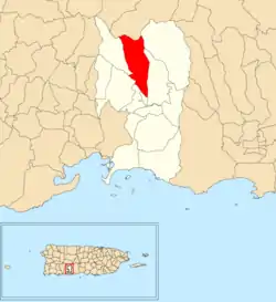 ![]() Location of Jaguas within the municipality of Peñuelas shown in red | |