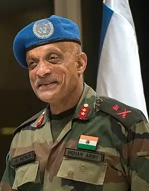 Major General Jai Shanker Menon (born 1959) is an Indian military official, and was the Head of Mission and Force Commander of the United Nations Disengagement Observer Force from 7 February 2016 to 22 October 2017. Prior to this appointment in February 2016 by United Nations Secretary-General Ban Ki-moon, Major General Menon served as the Additional Director General of Equipment Management in the Indian Army.[1]