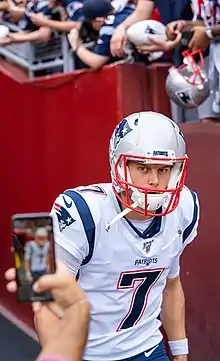 Upon joining the roster, Bailey competed with incumbent punter Ryan Allen, who had been with the Patriots for 6 seasons. Bailey won the competition, and Allen was released on August 19, 2019, after the Patriots' second preseason game.[3] Bailey serves as the Patriots' holder on field goals, as Allen did.[7] After Patriots kicker Stephen Gostkowski was placed on injured reserve, Bailey took over kickoff duties as well.[8]