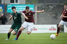 Adam Evans of Bohemians (left) and Jake Keegan (right) of Galway United in action at Eamon Deacy Park