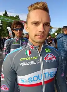 It was announced that Mareczko had signed his first professional contract with the then Neri Sottoli in July 2014.[7] Racing as an amateur cyclist in the 2013 and 2014 seasons, he won 16 races and came to the attention of Davide Cassani.[8] He was the most successful under-23 rider in Italy in 2014.[9] Mareczko was seen as one of the major hopes for Southeast Pro Cycling, which had been in significant trouble on account of repeated doping cases; the team also signed the veteran sprinter Alessandro Petacchi with the hope that he would be able to help Mareczko to develop as a cyclist (in particular to get stronger on the climbs), as well as potentially leading him out in the sprints.[9][10]