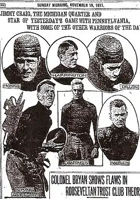- "If it wasn’t for Jimmie Craig it is doubtful if Yost would know he had a football team this year. The fleet halfback has been Michigan’s only hero."[13]
