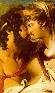 James Barry was born in Water Lane (now Seminary Road) on the northside of Cork, Ireland on 11 October 1741. His father had been a builder, and, at one time of his life, a coasting trader between England and Ireland. Barry actually made several voyages as a boy, but convinced his father to let him study drawing and art. He first studied painting under local artist John Butts.[2] At the schools in Cork to which he was sent he was regarded as a prodigy. About the age of seventeen he first attempted oil painting, and between that and the age of twenty-two, when he first went to Dublin, he produced several large pictures, which decorated his father's house, such as Aeneas escaping with his Family from the Flames of Troy, Susanna and the Elders and Daniel in the Lions' Den".