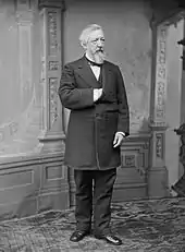 Blaine received the news at his home in Washington and telegraphed Hayes his congratulations.[70] In the subsequent contest of 1876, Hayes was elected after a contentious compromise over disputed electoral votes.[71] The results of the convention had further effects on Blaine's political career, as Bristow, having lost the nomination, also resigned as Treasury Secretary three days after the convention ended.[70] President Grant selected Senator Lot M. Morrill of Maine to fill the cabinet post, and Maine's governor, Seldon Connor, appointed Blaine to the now-vacant Senate seat.[70] When the Maine Legislature reconvened that autumn, they confirmed Blaine's appointment and elected him to the full six-year term that would begin on March 4, 1877.[70][lower-alpha 4]