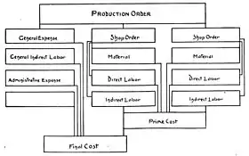 At the end of the chapter Griffith present a chart of manufacturing cost (see image). This chart is a graphic illustration of the items which enter into the cost of manufacture, the manner in which these items are obtained and, finally, brought together in a permanent form. Griffith commented, that "a study of this chart will enable the student to outline a general plan for a cost system suited to the needs of his particular factory. When the general principles of the cost finding system are understood, it becomes merely a matter of detail to apply those principles to individual factories."[27]