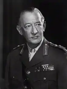 He was made GOC of the 1 (British) Corps on 4 January 1953[31] and, having been promoted to the rank of lieutenant-general on 2 February 1954,[32] became Director of Military Training at the War Office on 15 November 1954.[33] He was appointed director of operations in Malaya on 17 September 1957 during the Malayan Emergency[34] and, having been promoted to full general on 29 November 1958,[35] became General Officer Commanding-in-Chief (GOC-in-C) for Eastern Command on 29 June 1959.[36] He commanded the Northern Army Group and was Commander-in-Chief (C-in-C) of the British Army of the Rhine (BAOR) on 7 January 1960[37] and, having advanced to Knight Grand Cross of the Order of the Bath in the New Year Honours 1961,[38] became Adjutant-General to the Forces on 1 June 1963.[39] He became Chief of the General Staff (CGS), the professional head of the British Army, on 8 February 1965[40] and advised the British government on the implementation of the 1966 Defence White Paper which, inter alia, established the Territorial and Army Volunteer Reserve (TAVR).[41] He was promoted to field marshal on 29 February 1968 on his retirement from the British Army.[41]