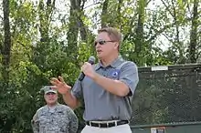 On August 2, 2014, during the annual Fancy Farm picnic, Comer announced he would seek the Republican nomination for governor of Kentucky in the 2015 election.[23] His running mate was State Senator Christian McDaniel.[24] At the conclusion of voting in the May 19 election, Comer was 83 votes behind businessman Matt Bevin. The Associated Press, calling the race a "virtual tie", did not call it for either candidate. Comer refused to concede and said he would request a recanvass.[25] The request was filed with the Kentucky Secretary of State's office on May 20, with Secretary of State Alison Lundergan Grimes ordering the recanvass to begin at 9:00 a.m. on May 28.[26][27] After the recanvass, Grimes announced that Bevin remained 83 votes ahead of Comer.[28] She also said that should Comer want a full recount, it would require a court order from the Franklin Circuit Court.[29] On May 29, Comer announced he would not request a recount and conceded the nomination to Bevin.[30]