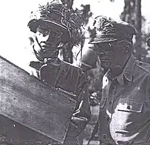![]() James Dalton (left) with Douglas MacArthur, most likely on Luzon in 1945 | |