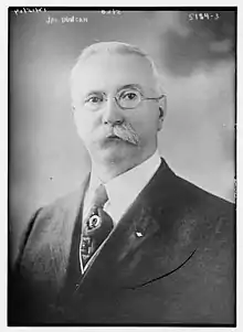 In May 1895, Duncan was elected secretary of the Granite Cutters' National Union. He was also named the editor of the union's journal, the Granite Cutters' Journal. He moved the union's headquarters to Quincy, Massachusetts, in 1900, where he took up residence.[1] The Granite Cutters' National Union had been organized in 1877 as the Granite Cutters' International Union of the United States and the British Provinces of America. The union's founder and first president was Thompson H. Murch, of Maine. He was elected to Congress in 1878, and was replaced by Josiah B. Dyer. Dyer moved the union's headquarters from Maine to Concord, New Hampshire. The union was, at best, a loose federation of largely independent locals. Although it claimed jurisdiction over and had locals in Canada, the Canadian members were an afterthought to the union. In 1880, the union changed its name to the Granite Cutters' National Union and changed its constitution to reduce its jurisdiction to the United States.[4][5] During his first few years in office, Duncan proposed and won passage of numerous amendments to the union's constitution, forming the Granite Cutters' National Union into one of the most effective unions in the country.[6] He was not, however, a supporter of civil rights for African Americans. Duncan negotiated several contracts in the Deep South which required employers to fire black granite cutters and hire Caucasian ones. When the American Federation of Labor (AFL) later complained about the agreements, Duncan strongly defended them and invoked the AFL's principle of autonomy for member unions in defense. The matter was dropped.[7]