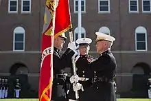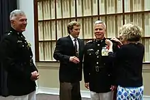 Receiving his fourth star in July 2008, Amos assumed duties as the 31st Assistant Commandant of the Marine Corps, based at the Pentagon in Arlington, Virginia.[5] In June 2010, Amos was recommended Secretary of Defense Robert Gates for nomination as the 35th Commandant of the Marine Corps. Amos was nominated by President Barack Obama on July 20,[6] who interviewed him for the job on June 17.[7][8] and confirmed by the Senate Armed Services Committee on September 21,[9] and confirmed shortly thereafter. On October 22, 2010, in a ceremony at Marine Barracks, Washington, D.C., Amos assumed the position as Commandant.[10] This marked the first time a Marine aviator had held the position of Commandant, and the first time since 1983 that a sitting Assistant Commandant had moved up to become Commandant.