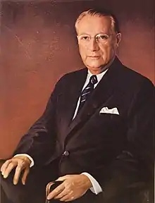 James F. Donovan (July 26, 1902 - June 7, 1979) was an American businessman and industrialist. Donovan served as co-trustee of the F.H Prince Holding Company which oversaw multiple corporations.[1][2][3] Donovan was chairman of the Union Stock Yard and Transit Company, often called “The Chicago Stock Yards”.[1][4] During his career, he administered the Central Manufacturing's 11 industrial parks in Chicago and industrial parks in Phoenix and Tempe, AZ and Sacramento, CA. He also served in a trustee role at Bentley University.[5][6]