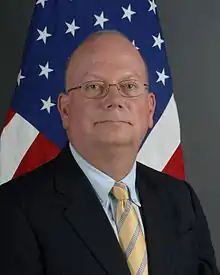 James F. Entwistle (born 1956) was the United States Ambassador to Nigeria from October 28, 2013 to October 2016. From 2010 until 2013 he was the ambassador to the Democratic Republic of the Congo. He is a career Foreign Service Officer. He was Deputy Chief of Mission at the U.S. Embassy in Bangkok, Thailand from July 2007 and was Deputy Chief of Mission at the U.S. Embassy in Colombo, Sri Lanka from 2004 until 2006 ("with simultaneous accreditation to Maldives").[1]