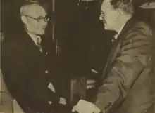 After the war, he spoke at student demonstrations, urging opposition to the Nationalist government and provoking criticism from the church in Canada. This led to his resignation from the ministry and the mission on May 5, 1946 after the United Church of Canada gave him an ultimatum to either modify his public statements or quit.[2] In August 1946 Endicott was invited to help write a constitution for the new League for the Protection of Human Rights in China. Paul Yen, Talitha Gerlach, Y. T. Wu and other liberals were also asked to participate.[4] At Zhou En-lai's urging, he moved to Shanghai to publish the underground anti-Kuomintang Shanghai Newsletter. The newsletter was aimed at westerners in the Kuomintang stronghold as well as at trying to convince western governments that Chiang's regime was corrupt and dictatorial.