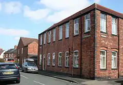 The Wesleyan Methodist Chapel of Nantwich in Cheshire was seeking a headmaster in 1866 for its elementary Day School to succeed the retiring Mr Mobbs; they required an incumbent who could also play the organ at the chapel. Twenty-years old Hall was appointed, and took up the position on 7 January 1867.[2] He was to spend the rest of his life in Cheshire.[1] The school had been founded in 1840, and stood on Hospital Street, opposite the chapel. In 1873, during Hall's time there, subjects taught included religion and reading, and both boys and girls attended.[3] The present building on the site dates from 1909; the old school burned down in January 1908.[3][4]