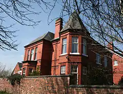 He moved back into Nantwich, initially renting 84 Welsh Row, and decided to open a private senior school for boys. He started to build Lindum House, a schoolroom and substantial master's house on Wellington Road. On 29 September 1886, while the buildings were still under construction, he opened the school on Welsh Row with six pupils. The new schoolroom was completed by the end of the year; by January 1887, the school had 17 pupils. The family moved into the master's house in April.[10] Financial problems occurred from the outset when Hall fell into dispute with his architect, incurring legal expenses of more than £250 which meant that he remained in debt until 1901. Despite employing a drillmaster and offering French tuition, pupil numbers rose only slowly and then declined, with the school never having more than 35 pupils.[10]