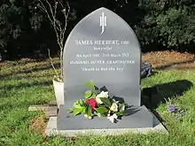 Herbert lived in Woodmancote, near Henfield in West Sussex.[5] He had two brothers: Peter, a retired market trader and John, an insurance broker.[6] Herbert would write his drafts in longhand on "jumbo pads".[4] In 1979 Herbert had to pay damages when it was ruled that he had based part of his novel The Spear on the work of another writer, The Spear of Destiny[7] by Trevor Ravenscroft.[8] In 2010 Herbert was honoured with the World Horror Convention Grand Master Award, presented to him by Stephen King.[2] Later in the same year, he was appointed an Officer of the Order of the British Empire (OBE) in the 2010 Birthday Honours, presented by Prince Charles.[9][10]