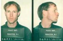 Hogue violated the conditions of his parole by returning to Princeton and hanging around the campus using the name Jim MacAuthor; he had not officially enrolled, but had attended social functions and eaten in the cafeteria. After a graduate student recognized him, he was arrested on February 19, 1996, and taken into custody by the Princeton Borough Police – who later released him on his own recognizance.[11] He was later incarcerated in the Mercer County Correctional Center on a conviction for defiant trespass.