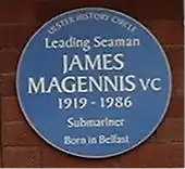 James Joseph Magennis, VC (27 October 1919 – 12 February 1986) was a Belfast-born sailor and recipient of the Victoria Cross, the highest award for gallantry in the face of the enemy that can be awarded to British and Commonwealth forces. He was the only native of Northern Ireland to receive the Victoria Cross in the Second World War.[1]
