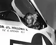 After World War II, Holloway became a naval aviator. He made two carrier tours to Korea, flying Grumman F9F-2 Panther jets on combat missions against the North Korean and Chinese Communists. He assumed command of VF-52 when his commanding officer was shot down. He was awarded the Distinguished Flying Cross and three Air Medals during the Korean War, and shared in a Navy Unit Commendation awarded to the aircraft carrier Valley Forge.