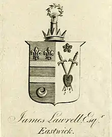 He was the son of James Lawrell (or Laurell), who had married in 1776 Catherine Sumner, daughter of William Brightwell Sumner and sister of the politician George Holme-Sumner.[1][2][3] His father was an East India Company official in the Bengal Presidency.[4] In 1801, James Lawrell senior having died, in 1799, Eastwick Park was sold by the family of the Earls of Effingham to the trustees of James Lawrell junior, still at that time a minor.[5][6][7]