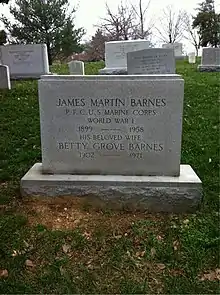 Barnes died in Washington, D.C., on June 8, 1958.[10] He was buried at Arlington National Cemetery, Section 13, Grave 14684-22-23. His gravesite is near the intersections of Farragut and Wilson Drives.[11]