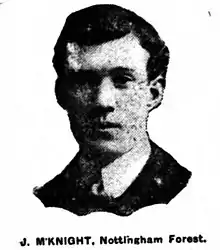 After scoring 23 goals in 23 games by March 1912, McKnight moved to Preston North End for a fee of £1,100, scoring his only two goals for the club in successive matches against Liverpool and Sheffield United . Following Preston's relegation, McKnight returned to Ireland in October 1912, helping Glentoran to win the title, before returning to England with Nottingham Forest in May 1913. This spell was not a success, with McKnight failing to score in 9 appearances, although he did score in the FA Cup against Clapton Orient.[1][2]