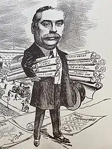 Elwell as a state legislator succeeded in providing an important funding mechanism for the city to fund the acquisition of parks, parkways and other elements of the proposed Minneapolis park system. This 1911 "Elwell Law" was recognized by Minneapolis park superintendent Theodore Wirth as the key tool for parks funding and acquisition, during the period when the Minneapolis park system tripled in size and realized the grand vision of early planners such as Horace Cleveland. Writing in a 1946 survey of his career, Wirth acknowledged Elwell's instrumental role: "Let us now give special attention to the period 1911 to 1930, during which time the park system of the city was really perfected […] Prior to 1911, there was no special assessment law permitting the assessments for improvements to park lands. The passage of the so-called Elwell Law [1911] provided that authority."[4] Along with its designers and superintendents, Elwell as a public financing architect played a key role in creating one of the leading city park systems in the U.S.[5]