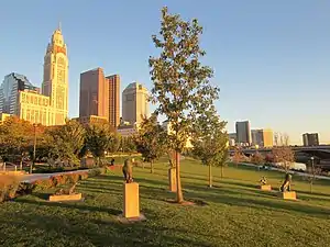 The James W. Barney Pickaweekee Story Grove features a series of six bronze sculptures by Jack Greaves, installed in Columbus, Ohio's Battelle Riverfront Park, in the United States. The artworks were completed in 1992 for the Christopher Columbus Quincentenary Jubilee celebrations.[1][2] The grove is named after Jim Barney, who served as director of the Columbus Recreation and Parks Department, and the sculptures were relocated to their current location in 2015.[1]
