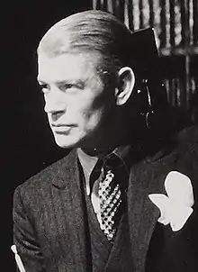 After the armistice, he returned to Birmingham and tried to find work as a cartoonist. He sold two cartoons to the Bystander in 1919 but was unable to secure a permanent position.[10] Later that year he embarked on a professional stage career. Under the tutelage of actor-manager Nigel Playfair, he worked as an actor, set designer and builder, "stage director" (akin to a stage manager) and director.[11] In 1922, while with Playfair, he met Doris Zinkeisen. They were considered a couple for some two years, despite Whale's living as an openly gay man. They were reportedly engaged in 1924, but by 1925 the engagement was off.[12]