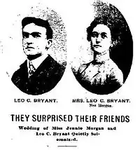 On Sunday, February 17, 1901, she married Leo Cullen Bryant, a 23-year-old native of Albion, Wisconsin,[4] who taught music and headed the Margaret Theater Orchestra in Anaconda.[5] The following month, the Bryants opened a music school in Butte, Montana, teaching piano and violin.