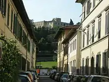 They initially lived in a couple of apartments in Florence, on the Lungarno Acciaiuoli and the Lungarno Torrigiani.[22] They tried to buy Fenis Castle near Aosta, Italy, but could not afford it.[23] They ultimately rented Villa Castagnolo seven miles west of Florence in Lastra a Signa from its owner: Marchese Lotteringo della Stufa. The capital city of Italy was relocating from Florence to Rome, and the Marchese moved with it to take a government position. The Marchese was extremely knowledgeable about agriculture and taught Janet much about farming. In turn, Janet also began implementing more modern agricultural methods at the villa especially in the areas of viticulture and cheese-making. One year she supervised the making of olive oil, an experience she would find useful when she later purchased her own villa.[24] Henry, essentially retired at this point, occupied himself by raising orchids.[25] Janet also befriended a local sculptor, Carlo Orsi, who resided at Orsi Villa. Henry encouraged Orsi to do more sketching, and Janet ultimately used him to illustrate many of her books.[26] While at Castagnolo Janet had a falling out with the British novelist Marie Louise Rame, who wrote under the pseudonym Ouida. Ouida was wooing the Marchese and believed Janet's relationship with him was more than platonic. In her novel Friendship she included an unflattering portrait of a character transparently based on Janet. Janet responded by placing a copy of the novel, sans covers, in the bathroom for appropriate use.[27]