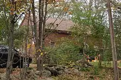 The Janicke House is located in a rural setting of central Goshen, on the north side of Goshen Center Road, about 1.6 miles (2.6 km) east of New Hampshire Route 31. It is set on a rise close to the road, from which it is separated by a fieldstone wall. It is a 1+1⁄2-story wooden structure, with a gabled roof and clapboarded exterior. It is about 36 by 25 feet (11.0 m × 7.6 m) in size, with about 2/3 of its walls formed out of wooden planks three inches thick that have been arrayed vertically, with dowels placed horizontally for lateral stability.[2] The remaining walls were built using balloon framing, as part of a later expansion of the structure.[3]