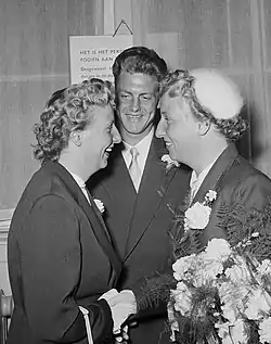 ![]() Marriage of Annie de Groot and Mr. Smits in 1953; Jannie congratulates her twin sister Annie. | |||||||||||||||||