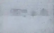 Blowing snow caused whiteout conditions on many highways in Nova Scotia on January 29 with some cars getting stuck in heavy snow.[89][90] Police urged residents to stay home and advised that if they had to drive, to drive slowly and use their four-way flashing lights.[31] Wind gust of up to 110 km/hr were recorded and late in the day, the snow changed to ice pellets and freezing rain, then to rain, and then in some areas, back to snow early on January 30.[84] The Trans-Canada Highway connecting Nova Scotia and New Brunswick was closed by police at 3 p.m.[31] Ferry service from Sydney to Newfoundland and from Digby to New Brunswick was cancelled and urban areas, including Sydney and Yarmouth, suspended transit.[89] Yarmouth had 16.5 centimetres (6.5 in) of snow and 17.2 mm of rain, Sydney had 11.2 centimetres (4.4 in) of snow and 94.8 mm of rain, but some areas had as much as 40 centimetres (16 in) of snow.[91][92][84] Halifax received about 25 centimetres (9.8 in) of snow and 16.7 mm of rain with near zero visibility due to blowing snow for a fews hours at midday and again overnight.[87][93] Halifax pulled its buses off the roads for several hours midday.[31] At one point, 8,000 households province-wide were without electricity and various organizations, including public libraries, recreational facilities, manufacturers and universities, closed for the day.[90][89]
