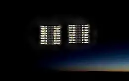 Each object had a square shape, consisting of two rectangular arrays of what appeared to be glowing nozzles or thrusters, separated by a dark central section. Captain Terauchi speculated in his drawings, that the objects would appear cylindrical[6] if viewed from another angle, and that the observed movement of the nozzles could be ascribed to the cylinders' rotation. The objects left abruptly at about 17:23:13, moving to a point below the horizon to the east.[8]