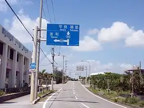 National Route 390 (国道390号, Kokudō Sanbyaku kyu-jū-gō) is both the southernmost and westernmost of the national highways of Japan. It connects Ishigaki, Okinawa on Ishigaki Island, to Miyako-jima, and Naha, Okinawa on Okinawa Island in Japan. Spanning the three islands by ferry, the highway has a total length of 58.2 kilometers (36.2 mi) on land and 552.2 kilometers (343.1 mi) when maritime distance is added.