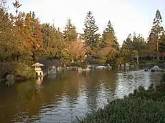 The Japanese Friendship Garden is a walled section of Kelley Park in San Jose, California, United States. Dedicated in October 1965, it is patterned after Japan's famous Korakuen Garden in Okayama (one of San Jose's sister cities) and spans six acres. Its three main ponds were stocked with koi sent from Okayama in 1966. The ponds are at different elevations in the park, and are inter-connected by streams.