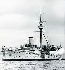 Itsukushima (厳島) was the lead ship in the Matsushima class of protected cruisers of the Imperial Japanese Navy. Like her sister ships, (Matsushima and Hashidate) the name Itsukushima comes from one of the traditional Three Views of Japan, in this case, the Itsukushima Shrine in Hiroshima prefecture on the Seto Inland Sea, home to a famous Shinto shrine dedicated to the goddess Benzaiten.