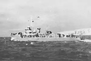 In July 1943 Kunashiri participated in the Kiska evacuation aspect of Operation Ke. During the war Kunashiri operated mostly in the Kuriles and Hokkaido area escorting various convoys. On 28 July 1944. she was reported "damaged" by unknown cause- USS Tambor. After the end of World War II Kunashiri returned to Sasebo and was later used by the Allied Repatriation Service. On 4 June 1946 while en route to Uraga the vessel ran aground and was later abandoned. In attempts to rescue her, the Japanese destroyer Kamikaze also ran aground, while at the same time, she too was repatriating Japanese troops from Singapore.[3]